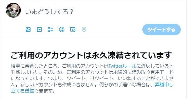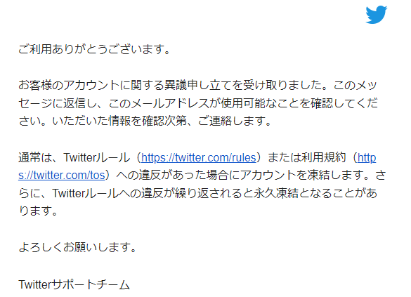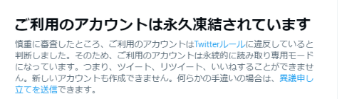 今は凍結祭りなのと、土日を挟むのでツイッターが確認するまで時間が掛かります。数日〜1週間は待ってみましょう。 pic.twitter.com/TXNte0qUE8